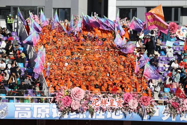 现场球迷:“鲜花方阵主要是以呈贡鲜花为题材,运用鲜花的道具和编排,为球赛打气加油。”