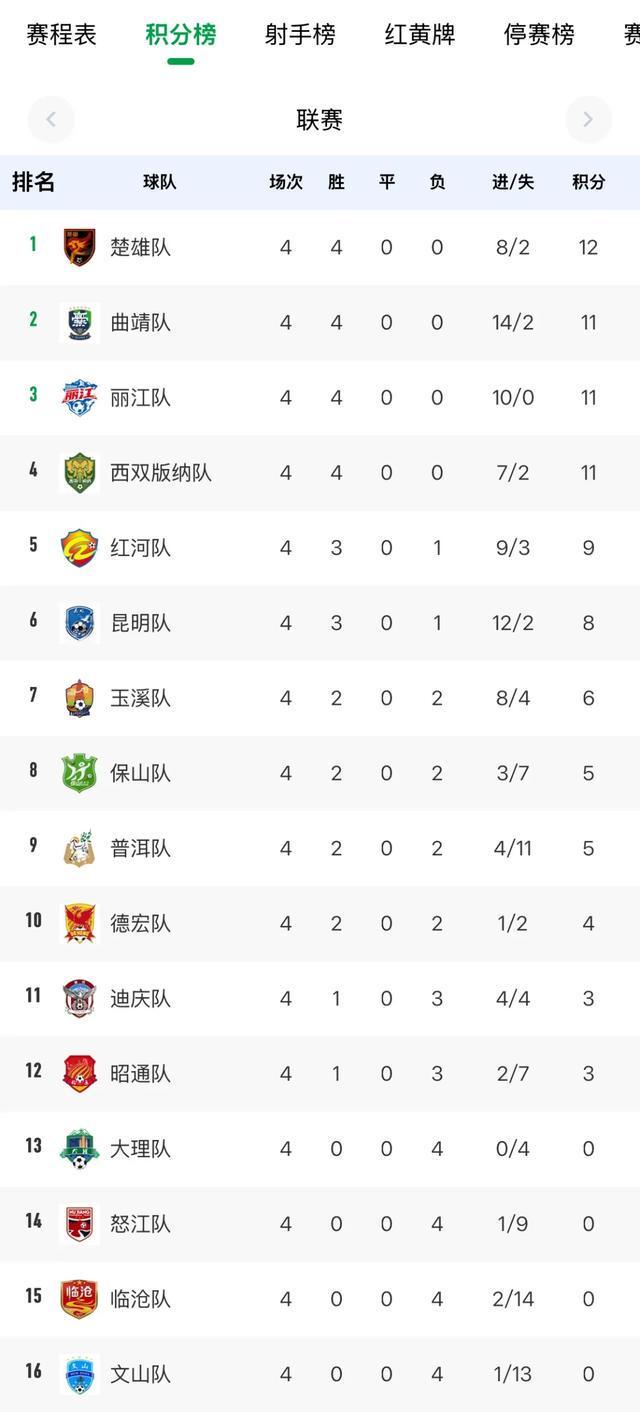 本场比赛后,昆明队3胜1负积8分,暂列积分榜第六位。临沧队依旧未能取得积分。