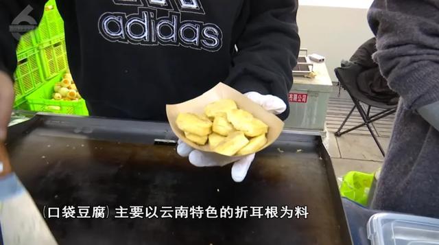 商户:“(口袋豆腐)主要以云南特色的折耳根为料,吃起来糯糯的,里面全是爆浆的。”