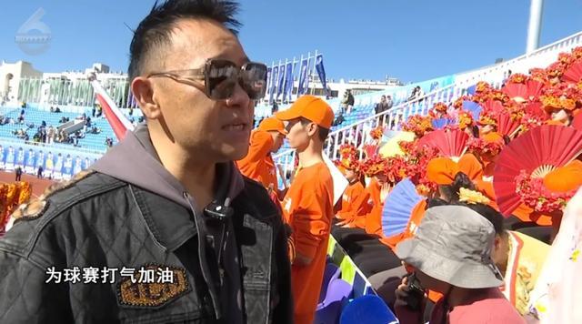 现场球迷:“鲜花方阵主要是以呈贡鲜花为题材,运用鲜花的道具和编排,为球赛打气加油。”